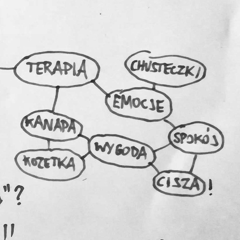 To było moje pierwsze namingowe zlecenie i to właśnie ono sprawiło, że zapałałem pewną pasją do tej dziedziny dizajnu. Wykreślanie tzw. mapy myśli było moim pierwszym krokiem i okazał się on strzałem w dziesiątkę. Dysponując siecią przelanych na papier, łączących się ze sobą i wynikających z siebie nawzajem skojarzeń (zacząłem od słowa „psychoterapia”) horyzont moich lingwistycznych penetracji wyraźnie się rozszerzył. Gdy w końcu wpadłem na Ciszę Po Burzy, momentalnie wiedziałem, że to jest to.