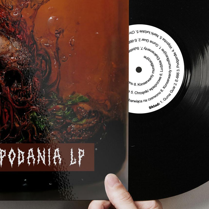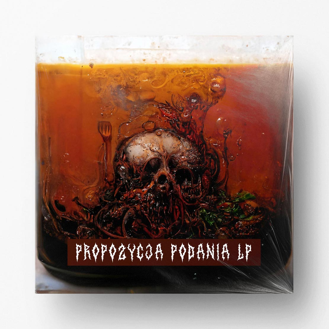 Propozycja Podania to zupełnie genialny tytuł albumu grupy metalowej, która ma dystans do samej siebie. Na okładce albumu flaki, bebechy, ogólny klimat w stylu gore i tytuł płyty: propozycja podania, nawiązujący do małych nadruków na opakowaniach żywności.