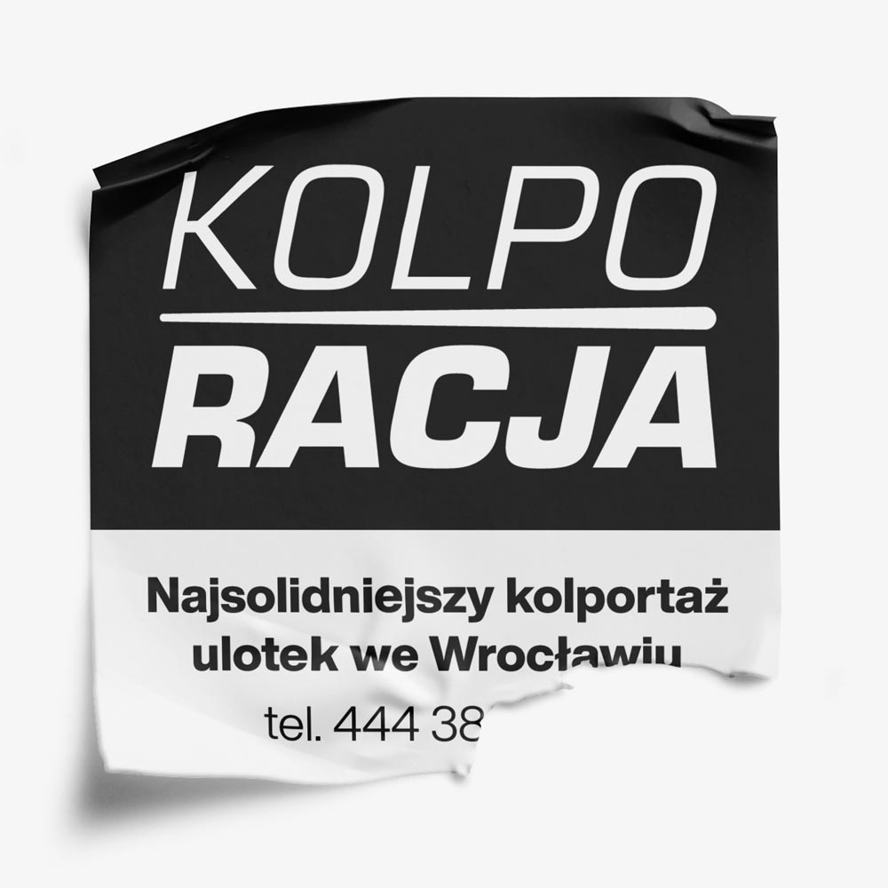 Zaczynając od nazwy, eksplorowałem słowa: ulotka i kolportaż. Tak się zdarzyło, że w fazie poszukiwań i skojarzeń zahaczyłem myślami o wyrażenie „pracuję w korpo”. Coś mi się zrymowało w głowie. Pracuję w kolportażu. Pracuję w KOLPO.